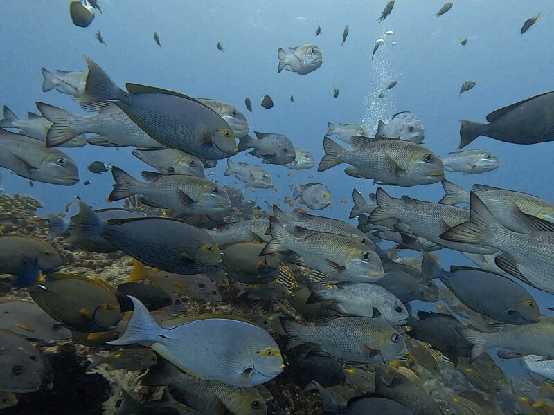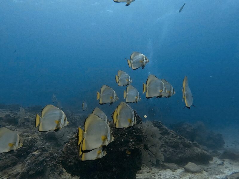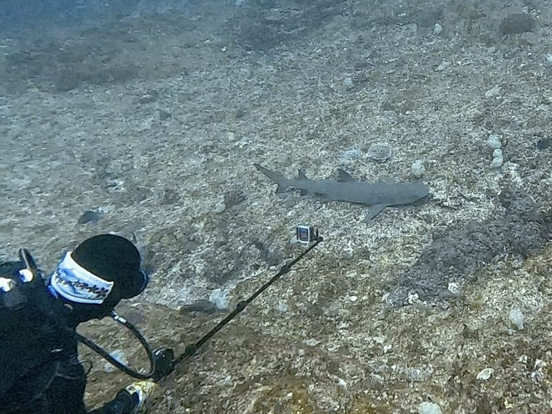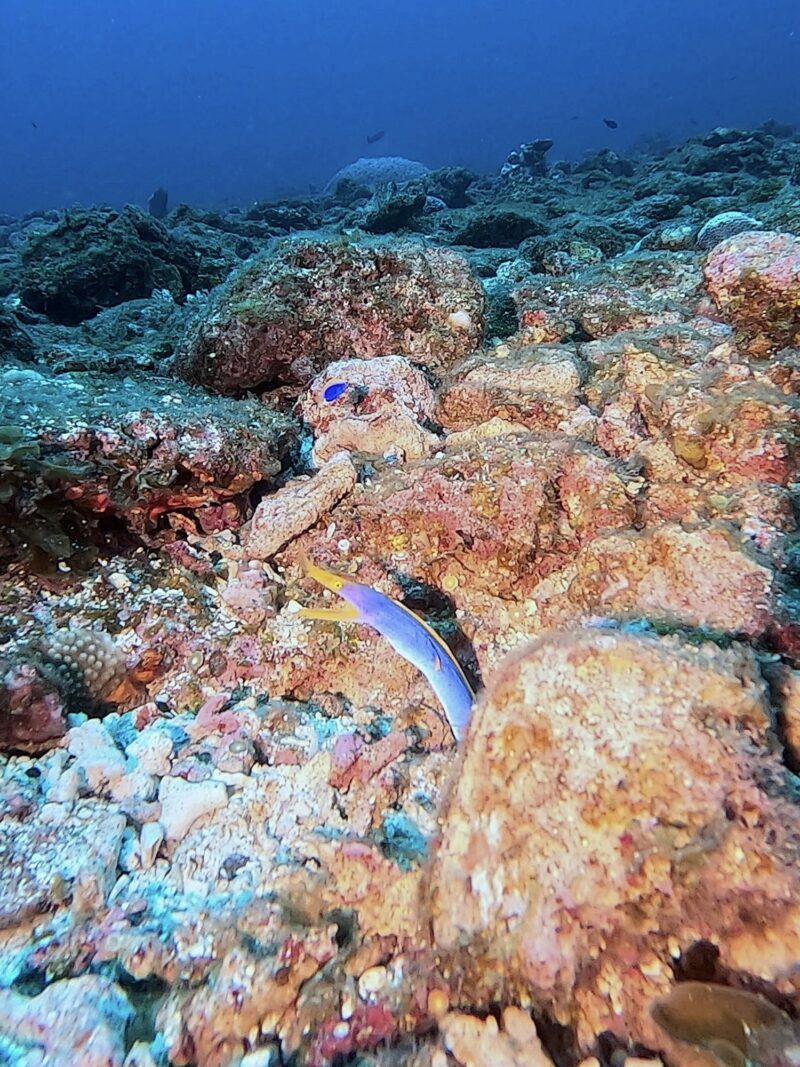 最近爆流れの下曽根ですが、1本目は久々の緩々でした。根回りを散歩できるぐらいでした。だが!しかし!ですね…なーんもいませんでした(-_-;)ネムリブカもどんなに近づいてもびくとも動かずで、みんなで存分に眺めさせていただきました(笑)2本目はぶち上げいつもの下曽根、30匹近くのイソマグロがいましたー!大物を見る代償は大きいですね。体力筋力持っていかれました…3本目ウチザン礁はクールダウンというところでしたね。ゆったりのんびりダイビングでした。