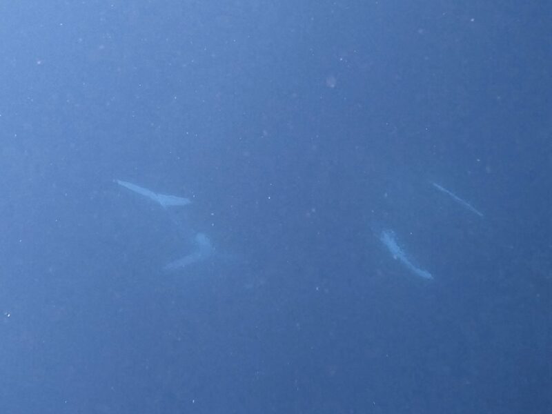 今日は2群4頭確認。2頭ペアのクジラとスイムできました。出航時は大雨。その後雨は止んでも波は高く、これは揺れる揺れる。そんな中、2頭のペアは20分超えのロングスイムできましたね。1頭は両方の胸ビレが白くてわかりやすかったです。ちなみに今日のクジラは新規個体だそうです。普段船酔いしないひなですが今日は撃沈でした。ホエールスイムは船酔い要注意です。睡眠しっかりとって、体調万全でお越しくださいね〜酔い止めは必需品ですよ( ^ω^ )