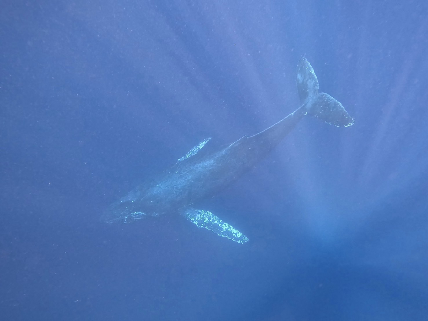ホエールスイム14日目 2026.02.04 2026.2.4(水) 今日は3群7頭発見、5頭とスイムできました。クジラたちも人懐っこく、一緒に遊んでくれたりとクジラたちと心が通じ合えた気がした日でした♪今日は天気にもクジラにも恵まれた1日でした!