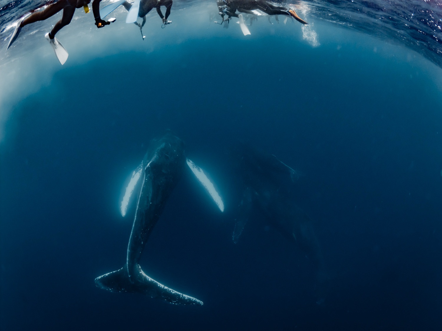 今日は4群10頭発見、6頭とスイムできました!今日は海況も悪く戦場のようでしたがんばりました。朝イチ2箇所でクジラ発見。そしたらまさかのイルカが登場。船のそばを泳いでいました。そして朝イチは3頭のクジラとスイム。その後今期初、エスコート付き親子クジラ発見しました。雨にも風にも波にも負けず、子クジラも一生懸命泳いでいました。かわいいブリーチングも見せてくれたり。エスコートクジラは白色の胸ビレでペックスラップ連発。このクジラ絶対スタイルいいはず!胸ビレすごく長かったです。今日は10頭発見、2桁乗りました。去年の旧暦に当てはめると今日からクジラが増える説…立証されました?かね(笑)今日も良き一日でした♪