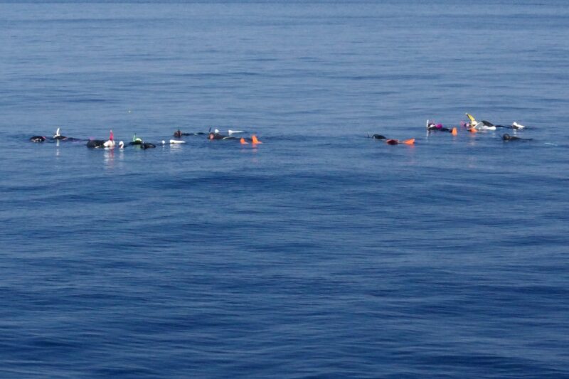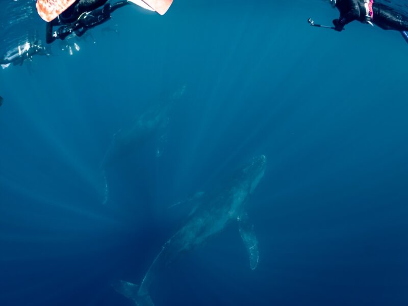 今日は4群6頭発見しました!天気も海況もよく、クジラ日和なはずなのに…今日のクジラたちは逃げる逃げる。なかなか水中でも姿を見せてくれなかったです…そんな中4頭目のシンガーは爆音でしたね。クジラの声が船上まで響いておりとても神秘的でした。でも水中で姿現してくれなかったですが素敵な歌聞けてよかったです。最後のペア2頭は泳いでいましたが、ベストタイミングいただきました。終わりよければ全てよし。最後はみんなクジラ見れてよかったです。