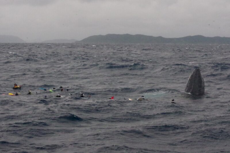 ホエールスイム25日目 2026.02.17 2026.2.17(火) 今日は大荒れ激寒のなか、4頭発見。今日のクジラたちは船や人に興味を持ってくれたのか近くで遊んでくれましたよ〜!真下を通過、そして目の前でスパイポップ。船上から見てても近すぎてドキドキヒヤヒヤしました。昨日となかなか苦戦してましたが、今日は面白いクジラと出会えました。 ひな