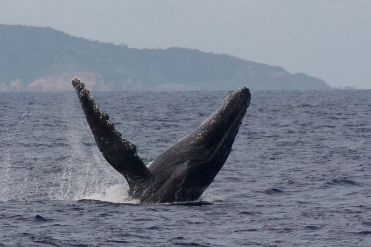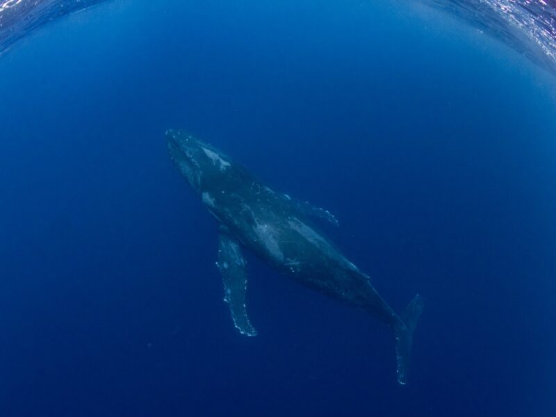 最後の2頭はペアで、水面を泳いでいるところをトライしました。これまた、船長の腕が試されるスイムですね。クジラの特徴から泳ぐルートを予測して船を先回りさせて水面に上がってくるとこを狙います。さすが船長。プロは違いますね〜ドンピシャで当ててくれました!!