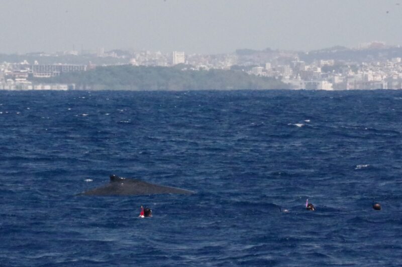 ホエールスイム40日 2026.03.08 2026.3.8(日) 今日は2群3頭発見、2頭の親子とスイムできました。1頭目はシンガーでしたが姿は見えず、ソングだけ堪能させてもらいました。その後の親子は逃げることなく遊んでくれました。ホエールスイムも残り2週間となりました。もう少しクジラ増えてほしいですね… ひな シンガー R-668 2007年から12回確認