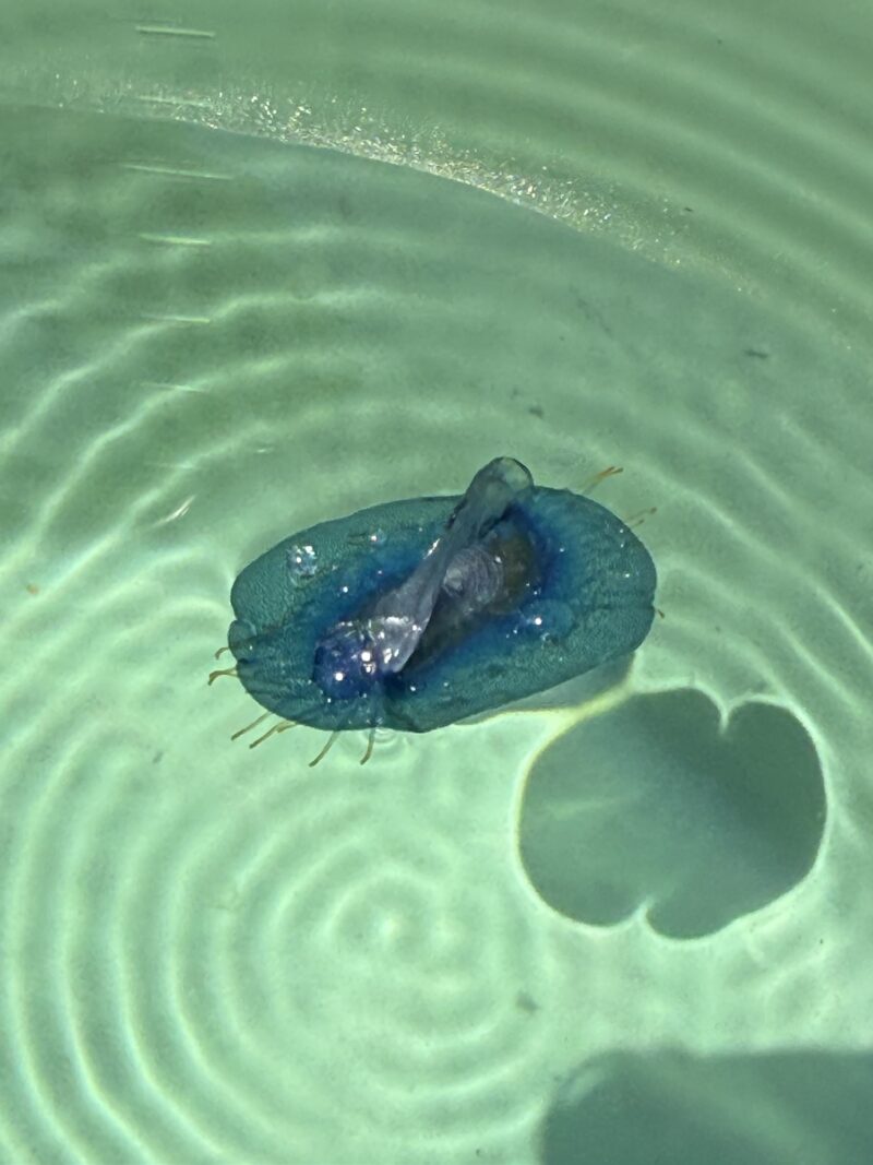 そしてクジラよりカツオノカンムリがいーっぱい浮いてました…カツオノカンムリは、ヒドロ虫綱に属するクラゲの仲間で、強い毒性を持つ生き物だそうです。見た目は青色で綺麗ですが、刺されると強烈な痛みや痺れがくるそうです。綺麗だからと言ってなんでも触ったら大変なことになりますね!みなさん気をつけてくださいね〜ひとつ勉強になりました
