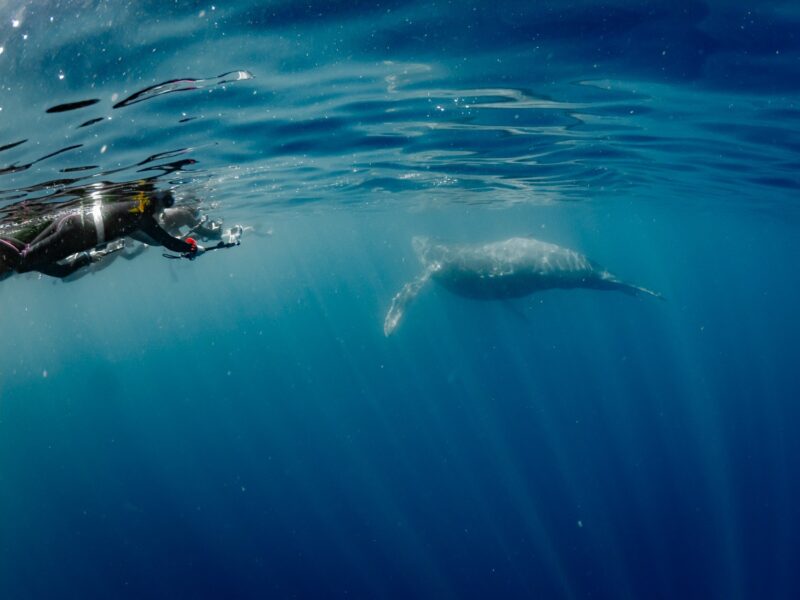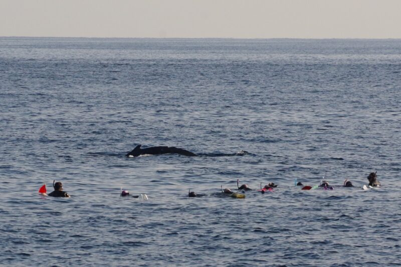 今日は親子クジラ2頭と泳ぎました。お母さんクジラは識別番号R-81、1993年から見られている古株だったみたいですよ!なかなか敏感で警戒心強めで、さらに水中が濁っており大変見にくい状況でしたがなんとか最後は見ることができました。