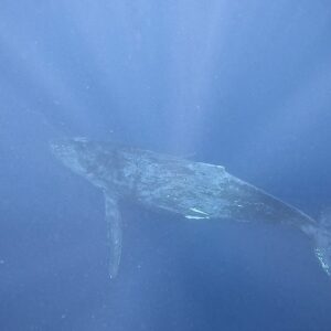今日は2群3頭と泳ぐことができました。今日も朝から捜索難航でした。初めの1頭は、泳いでいるところをトライしました。よく泳ぐクジラだったのでスパルタのようにエントリーとエキジットを繰り返して、なんとかベストタイミングゲット!ゲストのみなさん粘りあるナイスファイトでした!!残りの2頭はペアで浅いところを泳いでいましたが、船が近くと逃げちゃったり…なかなか近づくことができませんでした。ちなみにこのペアのうち1頭は、沖縄美ら島財団の調査によると2015年に1回みられたR-1582だそうですよ。最近捜索に苦戦するもなんとか見られてよかったです。もう少しクジラの個体数が増えてくれたら嬉しいですね〜