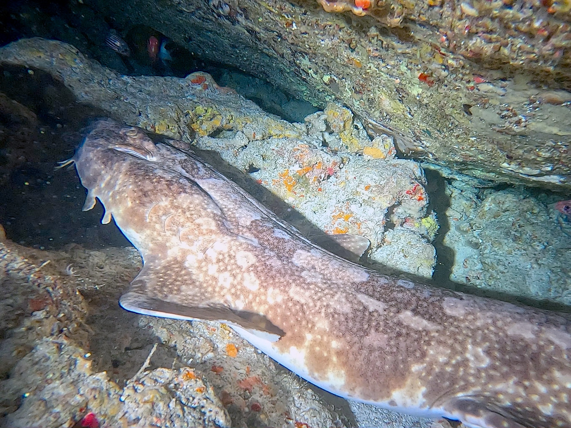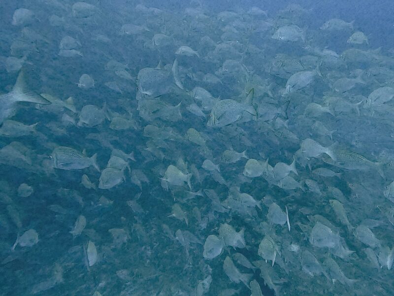 3本トライアングル勝負。今日は水温低めで少し寒かったです。タマンはどこに行ったのかなー?1、2本目はいつもの半分以下…あれ?ボリューム欠けちゃってなんか物足りない水中でした…でも3本目はなんとか固まってくれて一面タマンに戻りましたね♪そして気がつけばカマストガリザメが真横を泳いでました。結構な近さでしたよ〜
